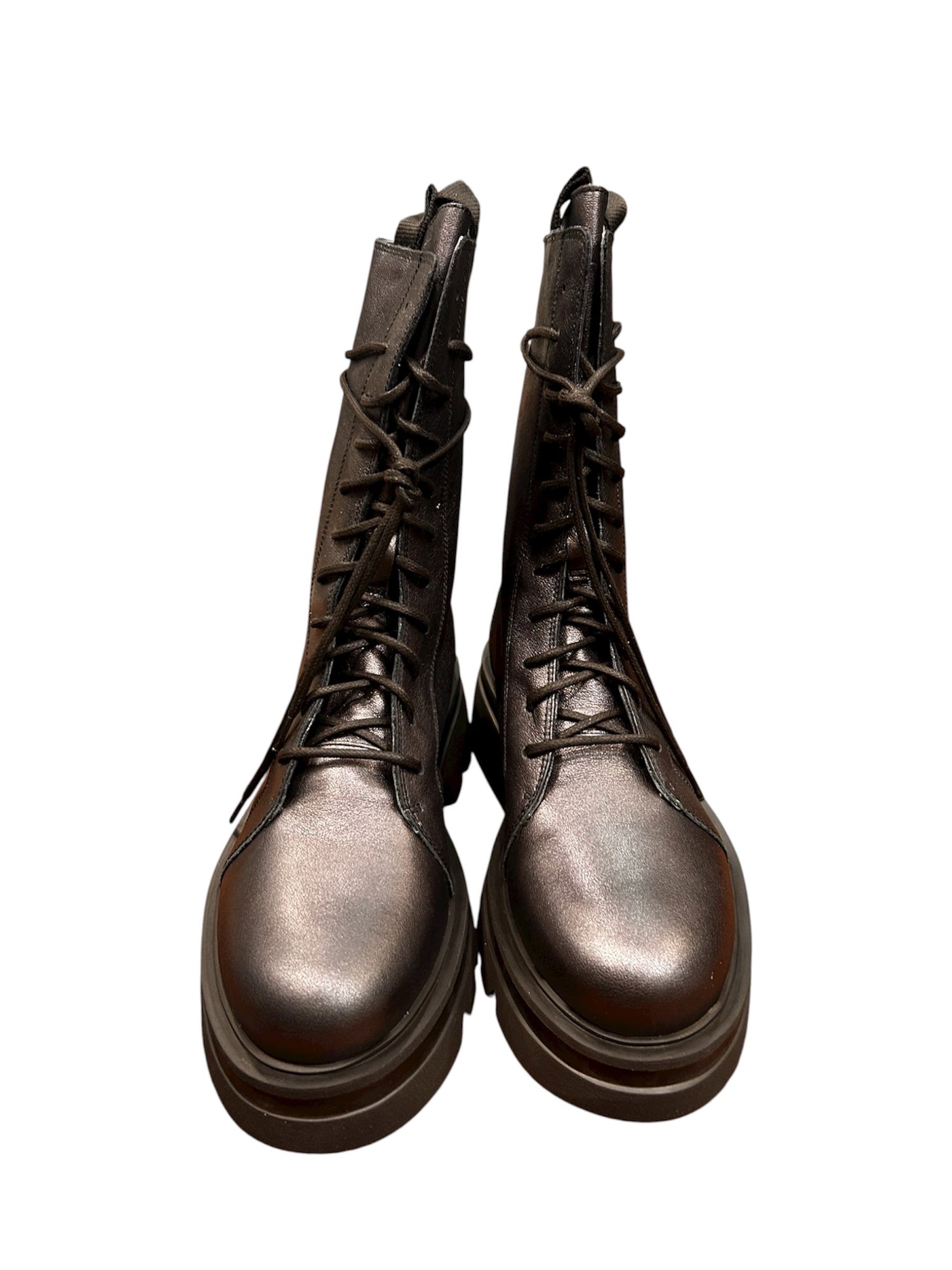 Scopri le Combat Boots Scorpio di Patrizia Bonfanti, anfibi allacciati in morbida pelle metallizzata, ideali per un look deciso e di tendenza. Questi stivali combat boots sopra la caviglia uniscono stile audace e raffinatezza, grazie alla loro linea semplice e pulita. Perfetti per donne che desiderano aggiungere un tocco di carattere e eleganza ai propri outfit, le scarpe combat boots Scorpio sono l'accessorio ideale per completare con stile ogni look urbano o casual. Acquista ora le migliori calzature combat boots Patrizia Bonfanti e valorizza il tuo stile con comfort e carattere!