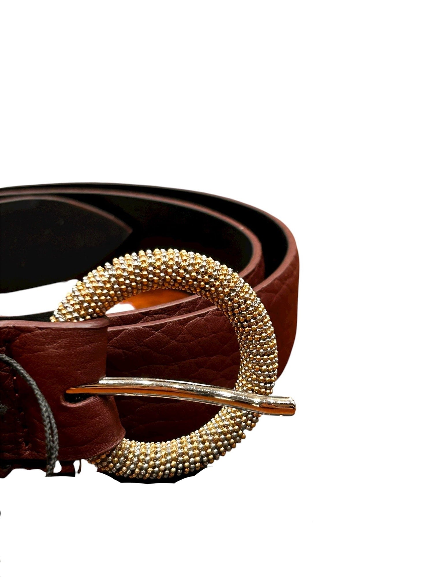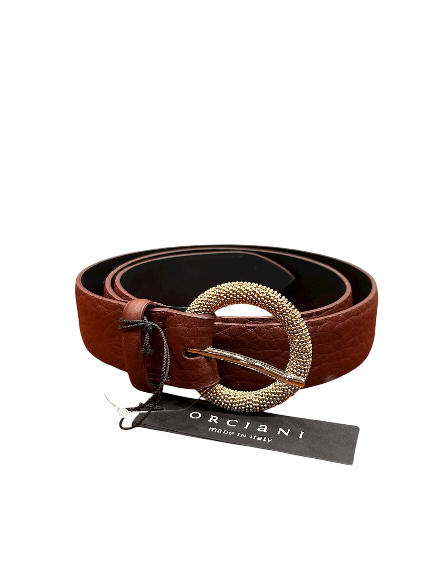 Cintura Orciani in pelle martellata con fibia gioiello.