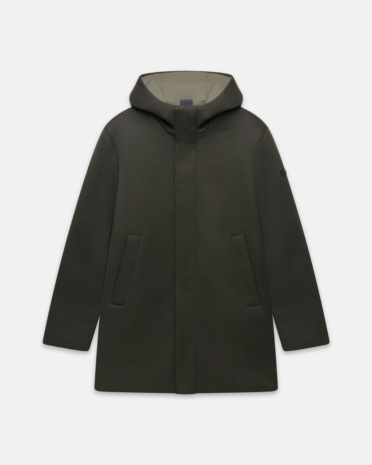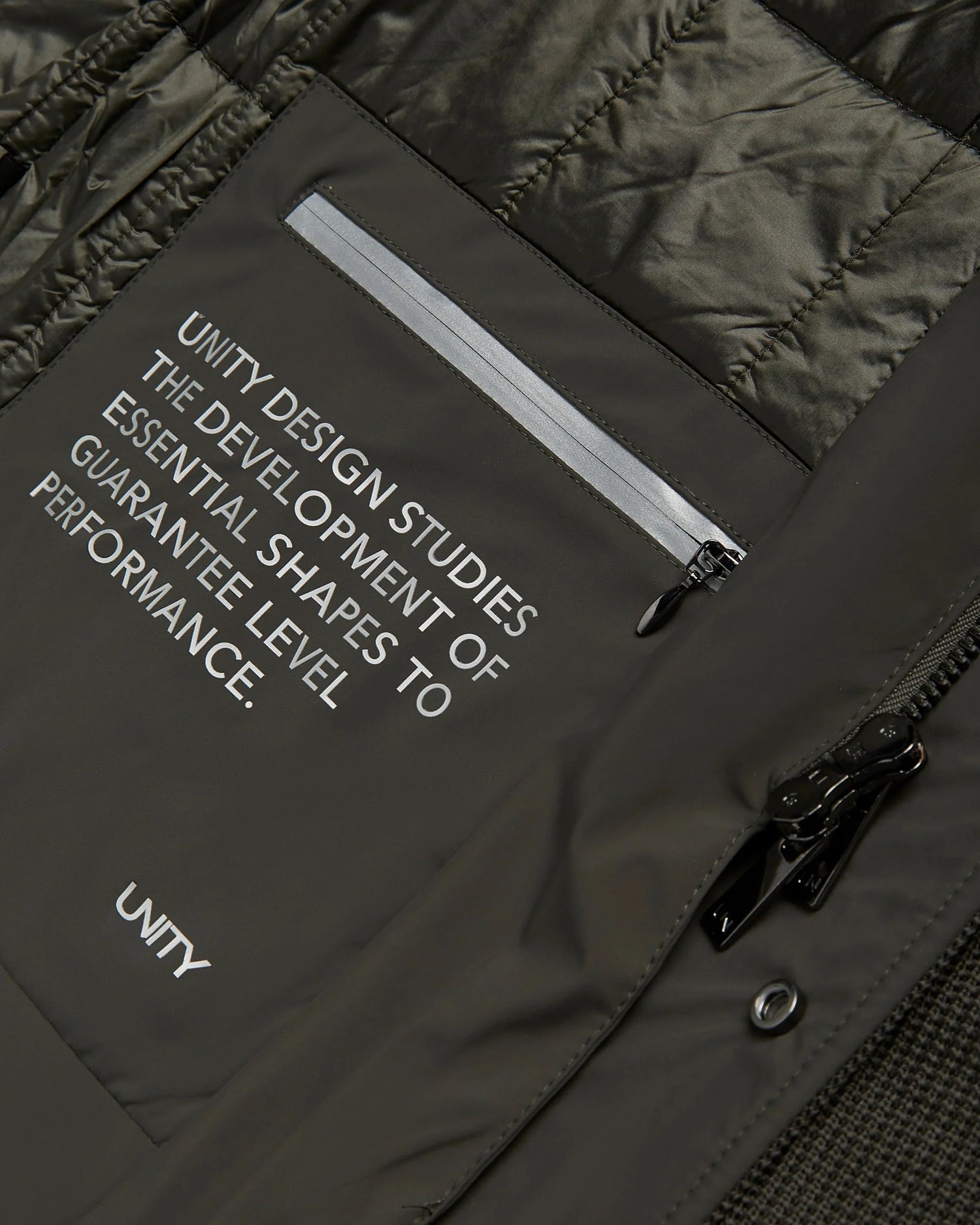 Tessuto a maglia ingegnerizzato realizzato in una fibra in poliestere riciclato mechanical stretch di nuova generazione. Accoppiato con un materiale tecnico d'avanguardia, garantisce un'elevata elasticità e un comfort senza compromessi. Si adatta perfettamente alla silhouette del corpo, offrendo una vestibilità impeccabile e un aspetto moderno e pulito. Progettato per coniugare la leggerezza e la morbidezza di una maglia con le prestazioni di un capo outdoor, assicurando resistenza, protezione e libertà di movimento.