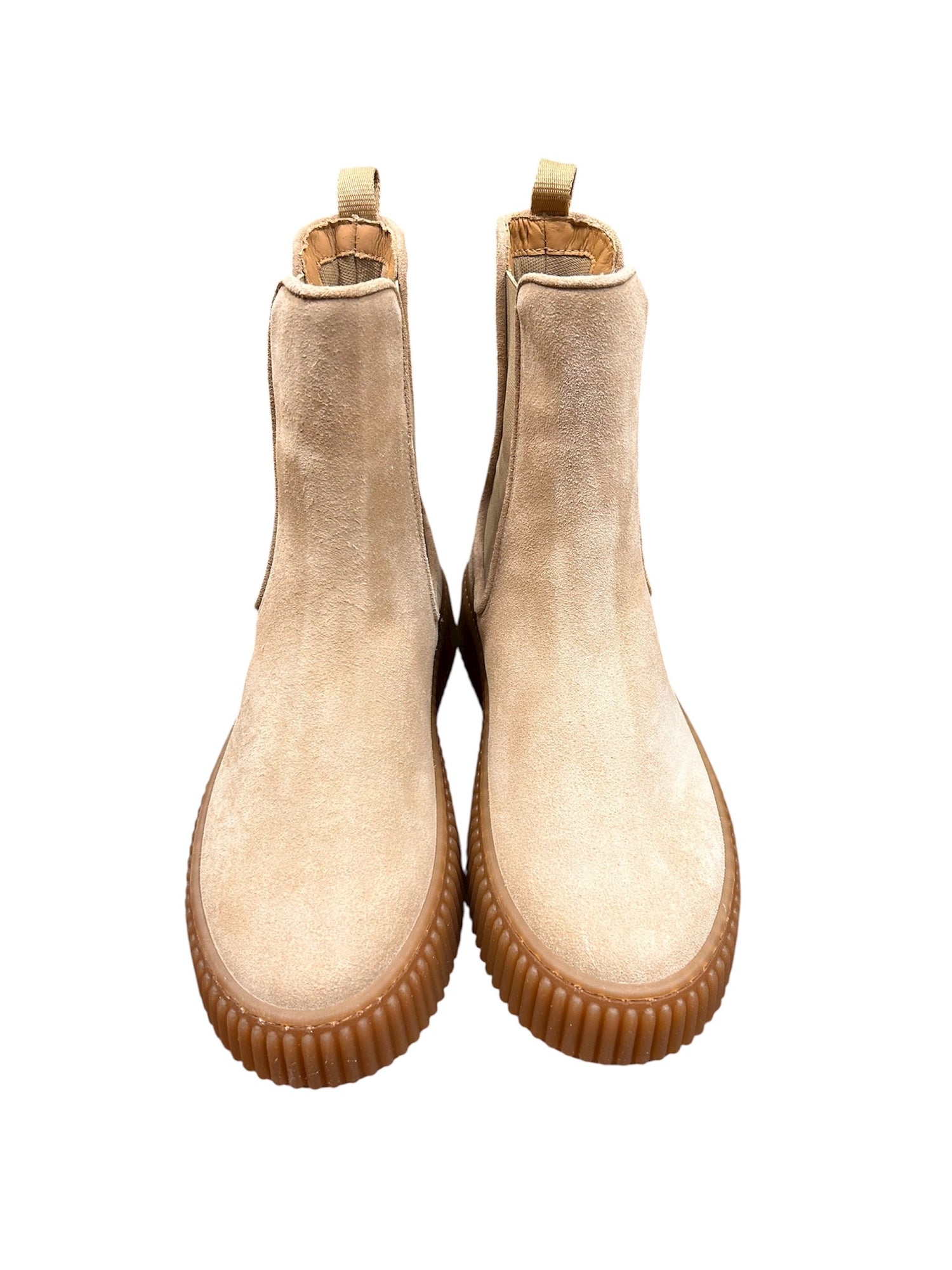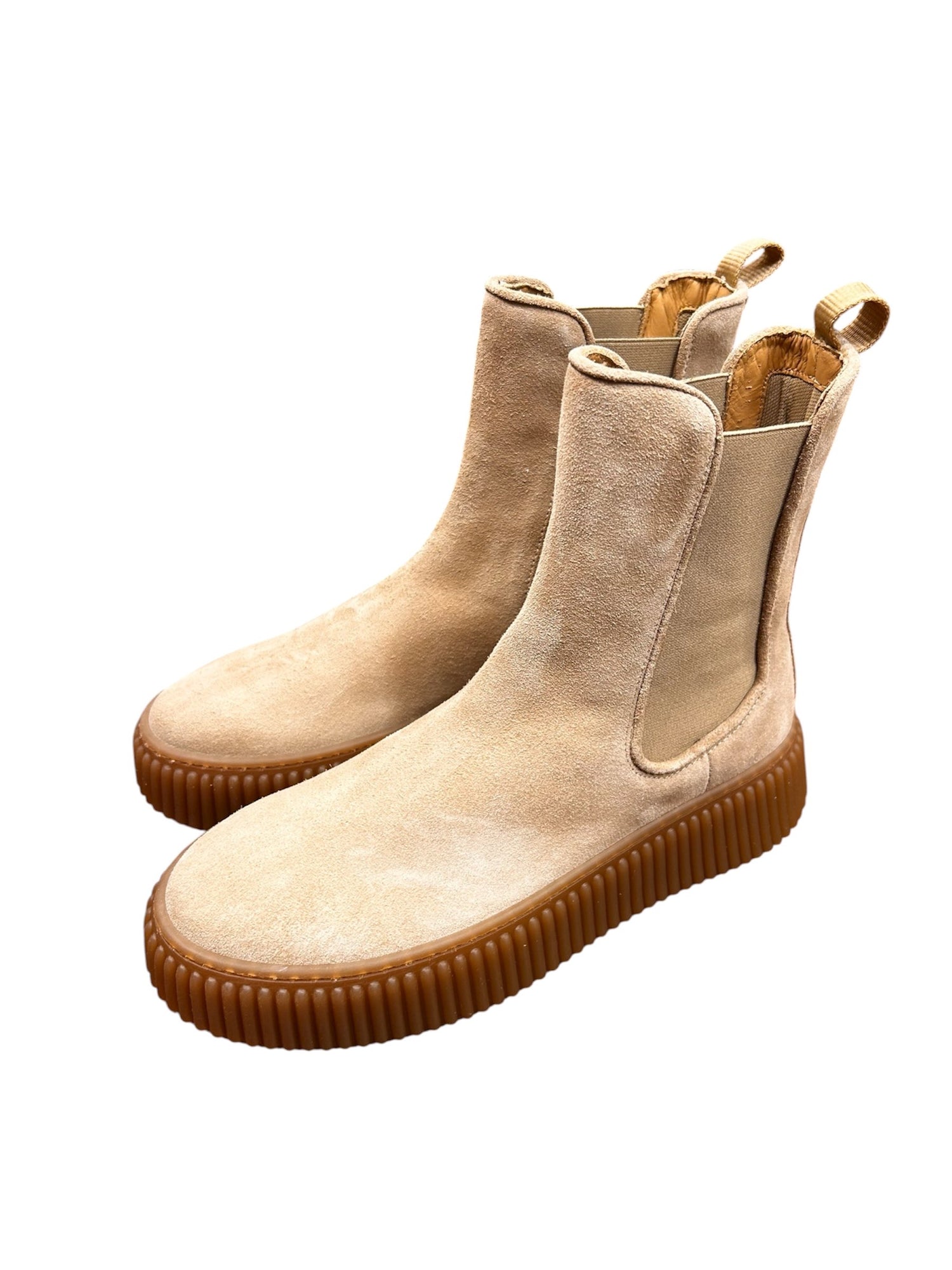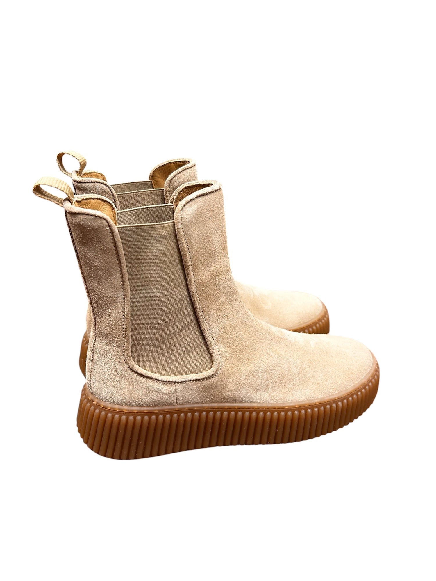 Lo stivale chelsea scamosciato antica cuoieria è realizzato in pelle di vitello scamosciata. Grazie agli elastici laterali, offre una vestibilità facile e veloce.
